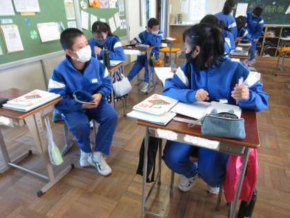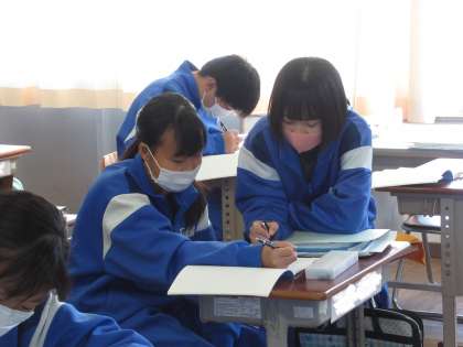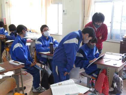 反比例に負の数が係わる問題にチャレンジしています。互いによく教え合っています。