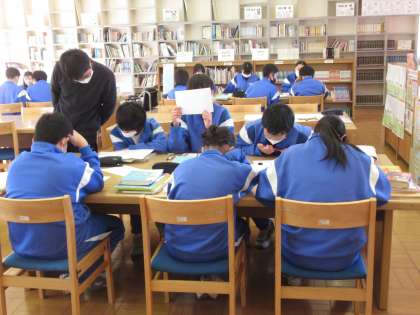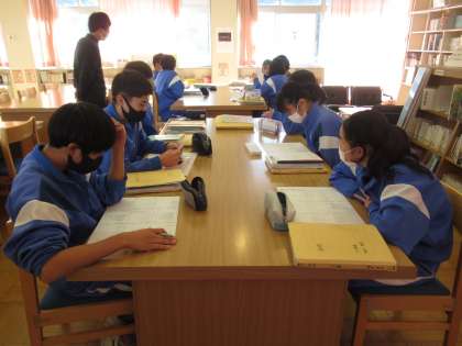 「おくの細道」を学習しています。「おくの細道」を詩にまとめたものを持ち寄り、旅の全貌を捉えるのが本時の課題です。