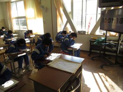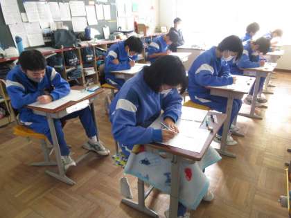 3年生は、入試を意識しての実力テストを実施しました。一つ一つの教科に、真剣に取り組んでいます。頑張れ3年生!