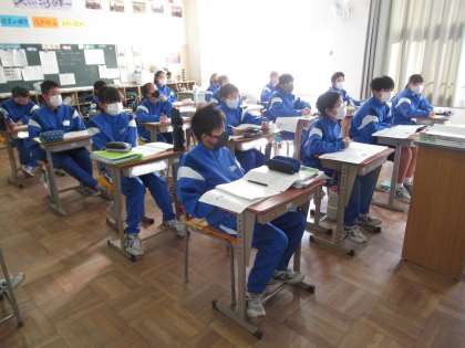昨日実施した学力調査がもどされ、振り返りを行っています。丁寧な解説をもとに再確認しています。