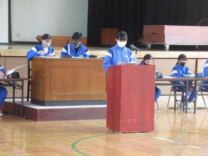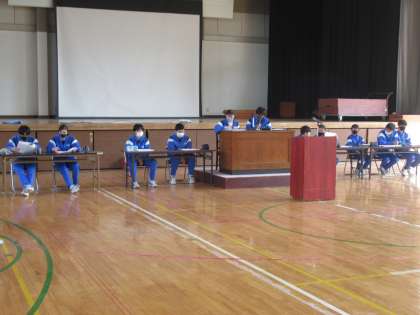 生徒会本部、各専門委員会、各学年委員会が後期の活動報告をしています。