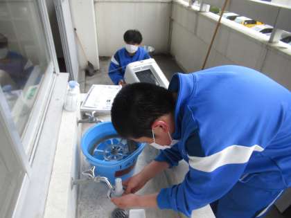 「雨のため部活動が早く終わったから」と、自発的に全学級の空気清浄機のフィルターや細かいパーツの清掃をしてくれています。その気持ちが素晴らしい!ありがとうございます。