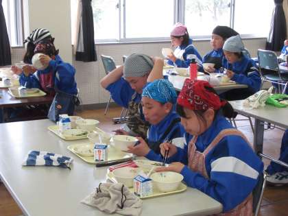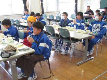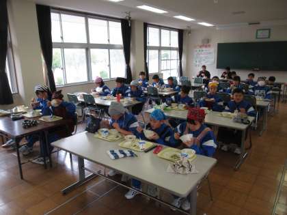 コロナ対策のため、一方向を向いて、会話をしないで食べています。楽しくおしゃべりしながら食べられるように、早くなってほしいですね!