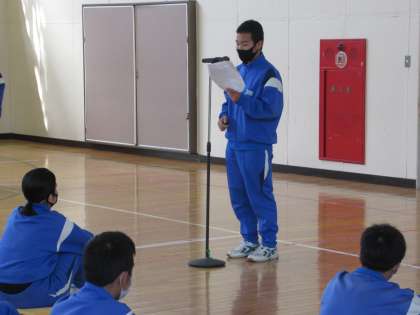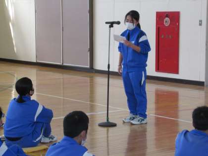 2年生から2名、3年生から1名の代表が前に出て、「新年度の抱負」を発表してくれました。