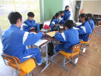 ディベートについて学習し、実際に行う準備をしています。「私たち3年生は、週に1回の漢字テストを行うべきである。是か非か。」がテーマです。