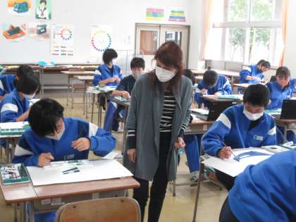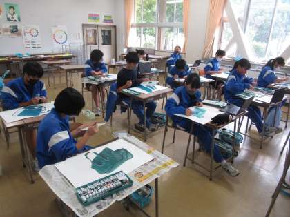 学校指定スポーツバックを題材に絵画に取り組んでいます。