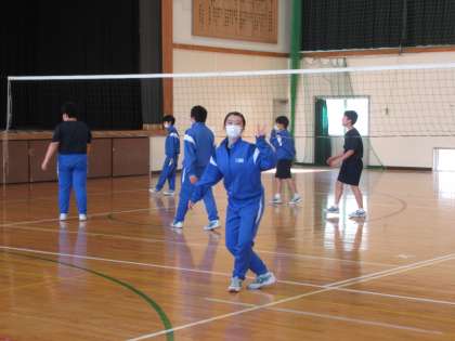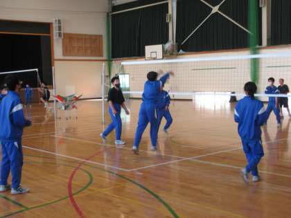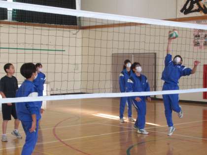 バレーボールのゲームを行っています。チームの連係プレーが増えてきました。
