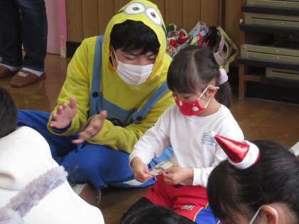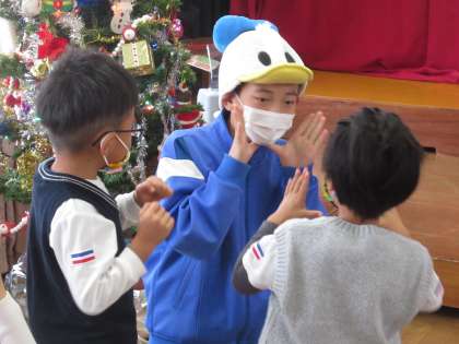 1年生が大平幼稚園を訪問し、クリスマス会のお手伝いをしました。普段とは少し違う、お兄さん、お姉さんとして頑張っている姿に、頼もしさを感じました。幼稚園の園児はもちろん、幼稚園の先生方にも大変喜んでいただきました。私たちも感動しました!ありがとう。
