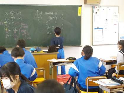 『等式の変形』について学習しています。式の計算を利用して、等式を目的に応じた形に変形しています。また、等式変形の手順(過程)を見てどうしてそのように変形できるのか、その理由も考えています。