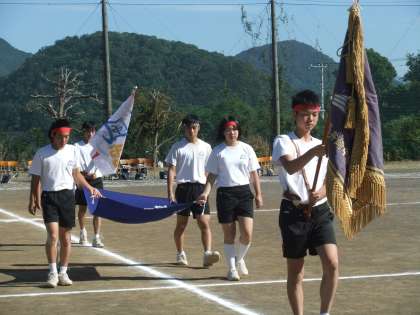 この日のために、生徒会を中心に1学期から計画を始め、準備してきました。大規模校とは違い、一人一人の生徒が動かないと運営できません。選手に、係の活動にと忙しい中に、紅白の団長のリードのもとに、すばらしい体育祭が運営できました。また、地域のお年寄りの方や、PTAとも楽しく交流をすることができました。