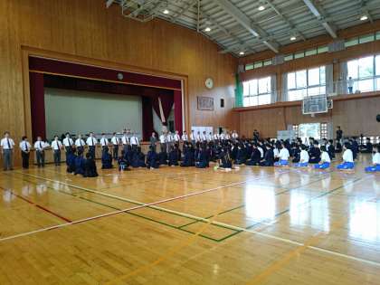 おはようございます。本日、中体連の剣道大会が行われます。本校からは、3年生の大川千寛さんと2年生の古家晃平さんが個人戦に出場します。