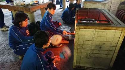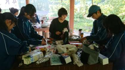 三日目の朝食は、ホットドッグとスープです。手際よく調理しています。