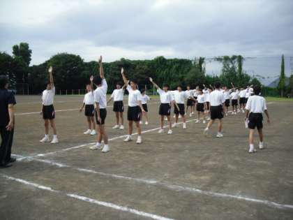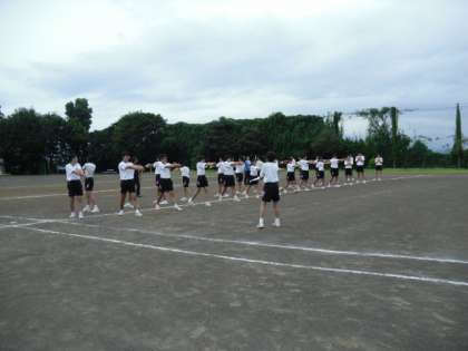 たちばな祭体育の部に向けて赤、白に分かれて応援練習をしています。
