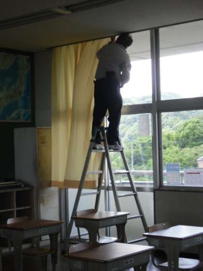 本校は、明日から臨時登校を開始します。生徒たちが気持ちよく過ごせるようにと、職員が分担して清掃を行いました。体育館、体育館器具庫、バレー部室、各教室・廊下、生徒玄関、職員玄関を再整備しました。明日が楽しみです。