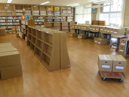 長井崎中図書館も小中一貫学校図書館として生まれ変わります。今日は内浦小学校から本箱と、何と段ボール140箱の書籍が届きました。しばらくの間、図書館は休館になりますが、ここで図書委員会が立ち上がりました。学級への図書幸せ便の実施です。各学級に福袋として約20冊の本をお届けし、さらに図書委員のそれぞれが選んだおすすめ本を駅弁屋さんのように届けます。明日から実施の予定です。ご期待ください。