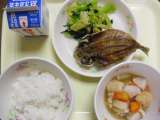 本日のメニュー ・ごはん ・牛乳 ・あじのひもの ・おひたし ・おけんちゃん...