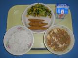 【今日の献立】 ・ご飯 ・マーボードウフ ・わかさぎのごまフライ ・茎わ...