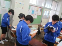 3A 国語 井上ひさしの『握手』に入っています。ペアで音読をしているところでした。