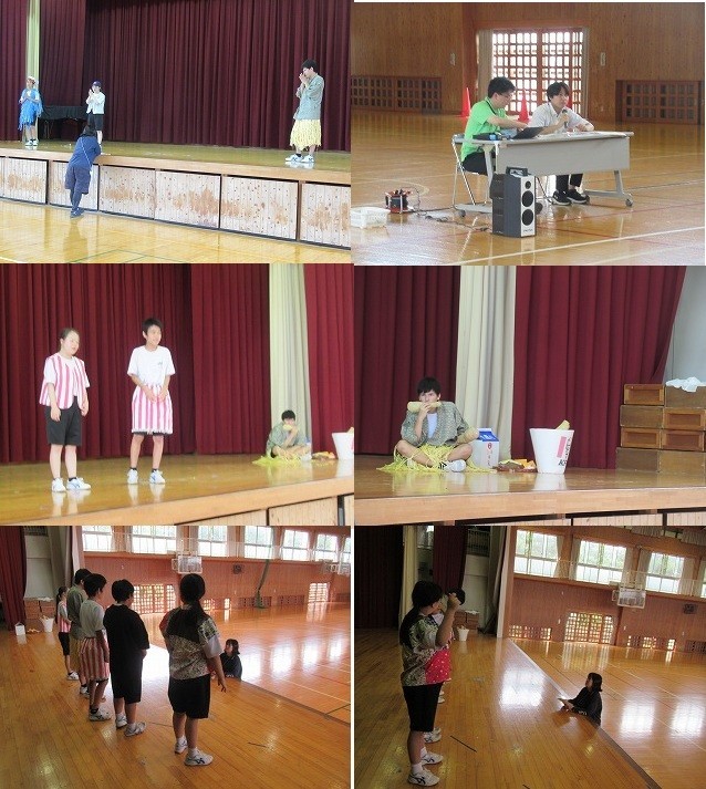 F組 2時間目の劇の練習風景です。台詞の言い方や動きを確認していました。楽しそうに演じています。どんな劇になるのか、とても楽しみです。