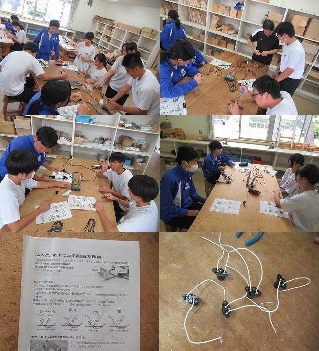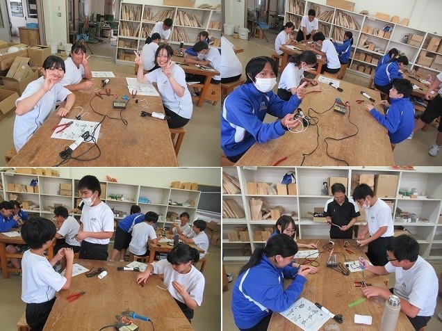 2C 技術 回路のはんだ付けをしていました。上手にできたようで笑顔がたくさん見られました。