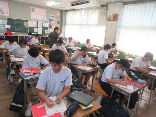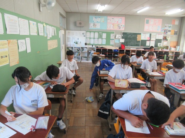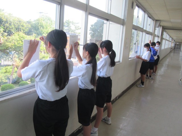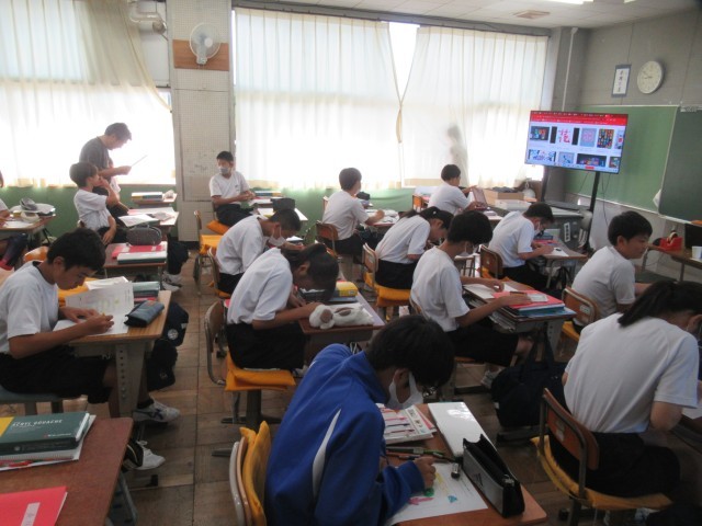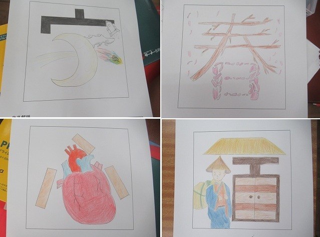 1A 美術 「絵文字」の制作 自分の名前の一文字や好きな文字を創作し、素敵な絵文字に変身させていました。