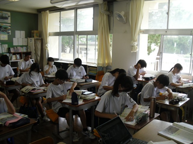2B 社会 地理分野 近畿地方の都市部の課題について、教科書を確認しながらまとめていました。