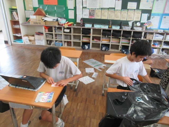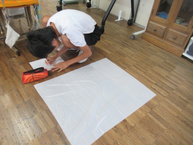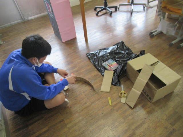 F組 ハロウィンに向けての衣装作りが始まりました。どんな仮装をするのかな?自分たちから「やりたい」と企画を申し出て始まった単元です。当日が楽しみです!