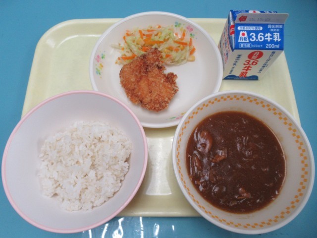ハヤシライス チキンカツ コールスローサラダ 牛乳