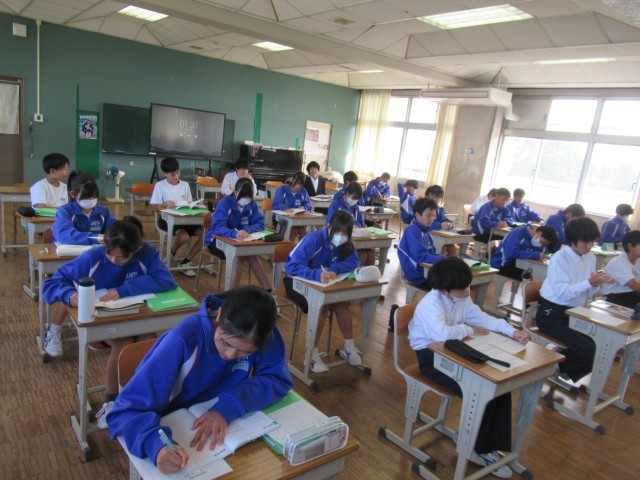 1B 音楽 合唱の振り返り後、「魔王」の鑑賞に入っていきました。
