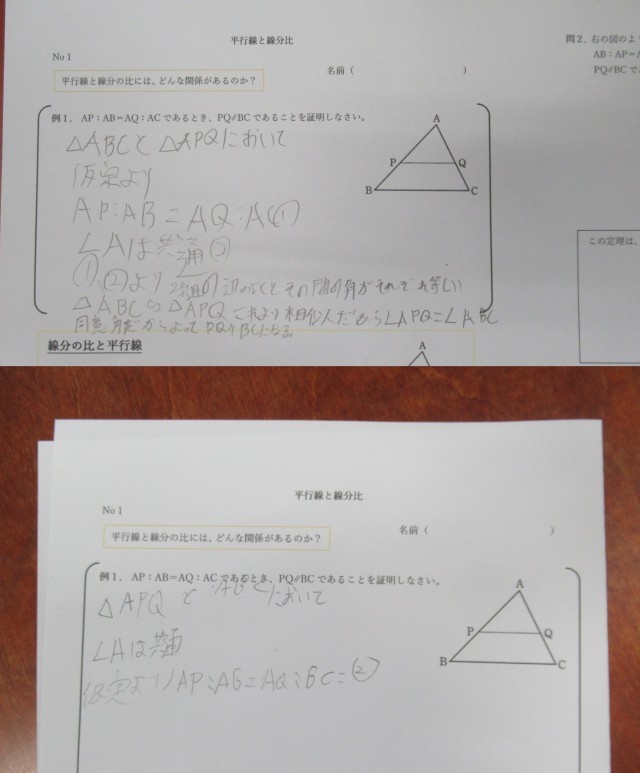 3B 数学 「平行線と線分比」の証明問題に挑戦しているところでした。