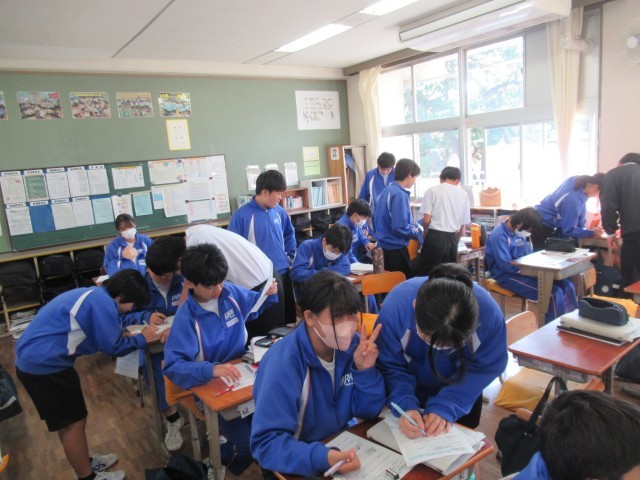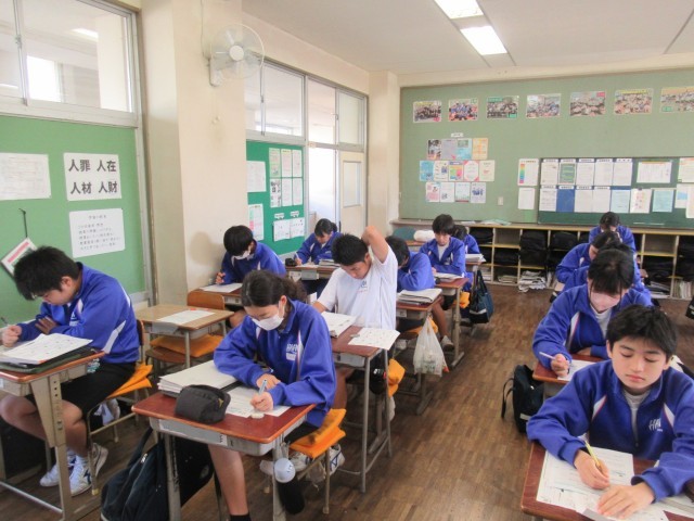 2C 理科 今日は「湿度と空気中の水蒸気」の様々な問題に挑戦していました。計算が必要な問題です。じっくり向き合い考えていました。