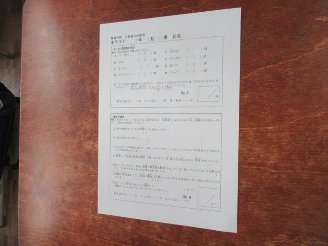 2B 家庭 「六つの基礎食品群」の小テストをしているところでした。どうだったかな?