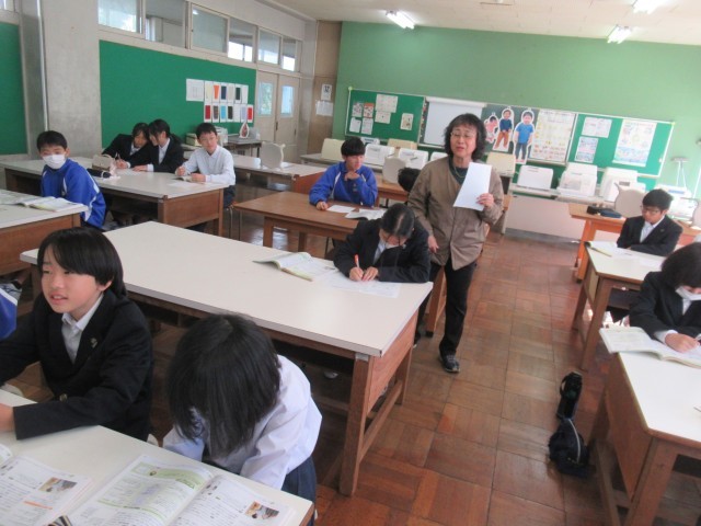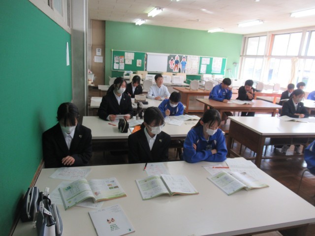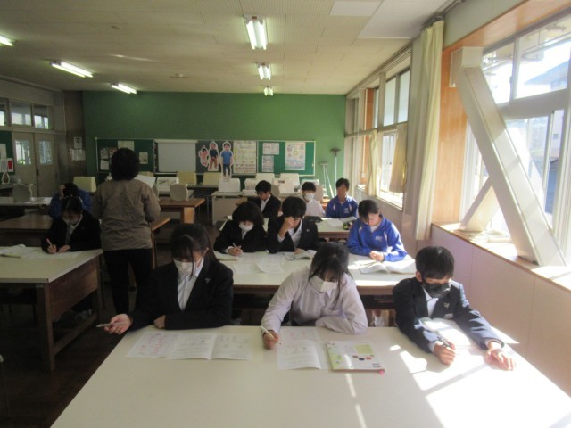 1C 家庭 学力テストが返され、設問ごとに皆で振り返りをしているところでした。