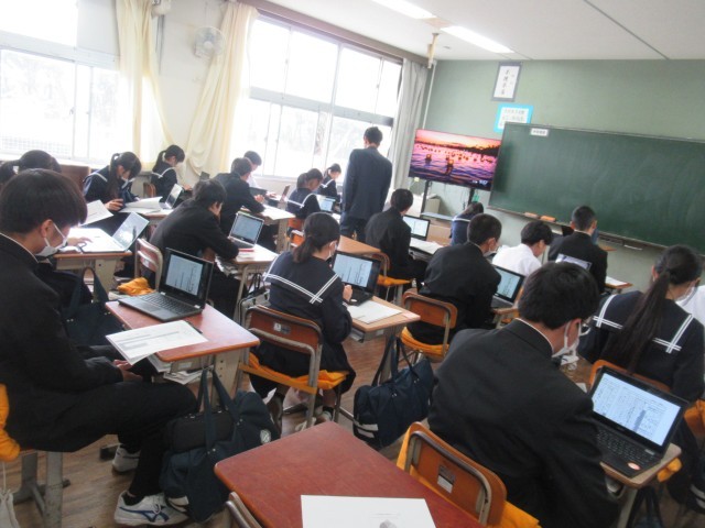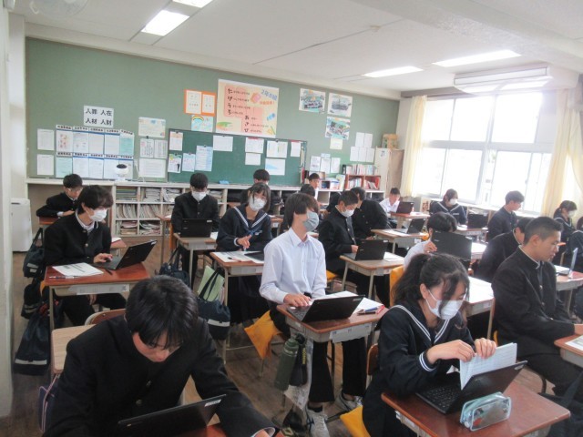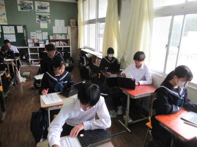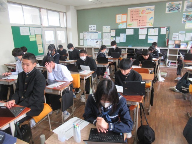 2B 国語 テストの返却後、Chromebookで振り返りをしているところでした。