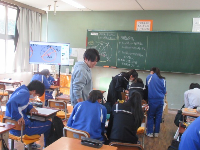 3B 数学 「円周角と中心角」の関係について学んでいました。