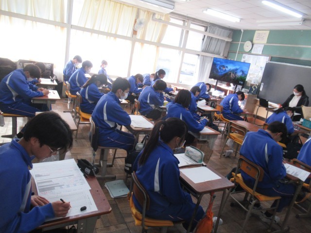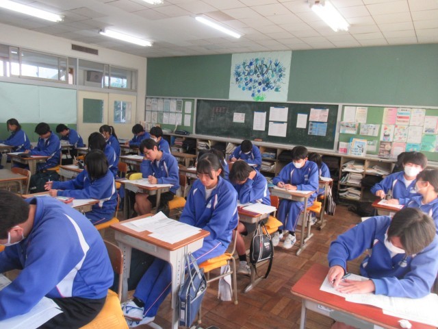 3D 国語 学力テストが返却され、振り返りをしているところでした。