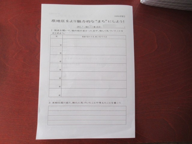 3年生は総合的な学習の時間における探究学習「誇りをもてる魅力ある『まち』原へ!」のまとめとして、スライド発表会を行いました。