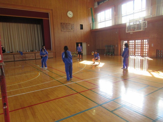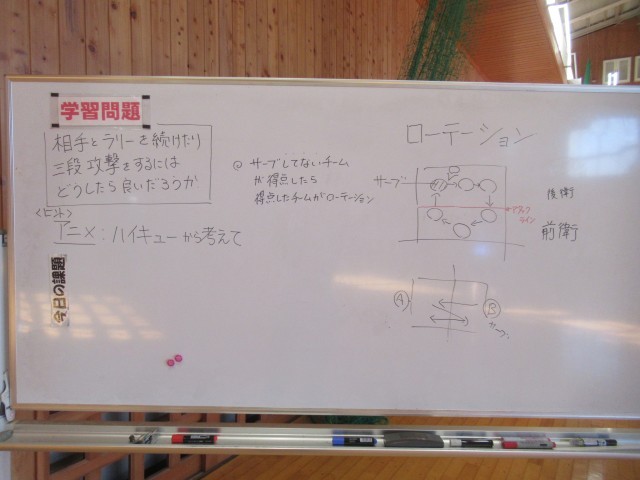 3A 保健体育 ネット型球技「バレーボール」 「相手とラリーを続けたり、三段攻撃したりするにはどうしたらよいだろうか?」を学習課題としてゲーム形式で進めながら追究していきました。