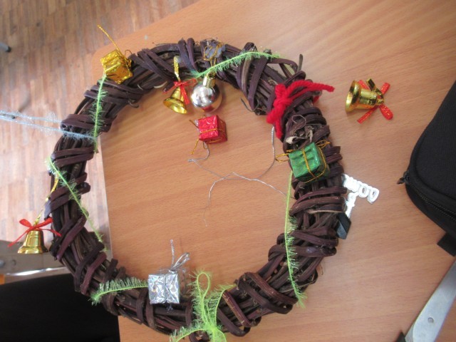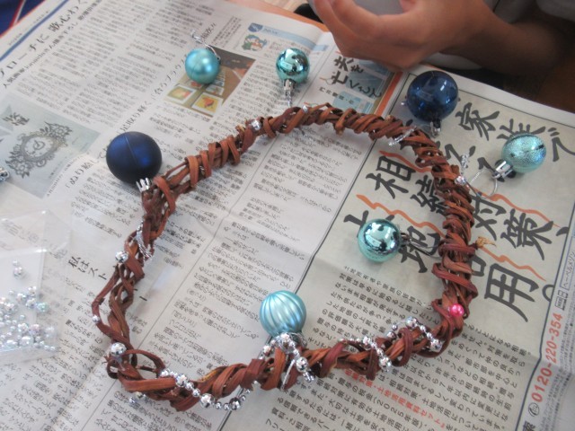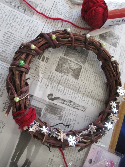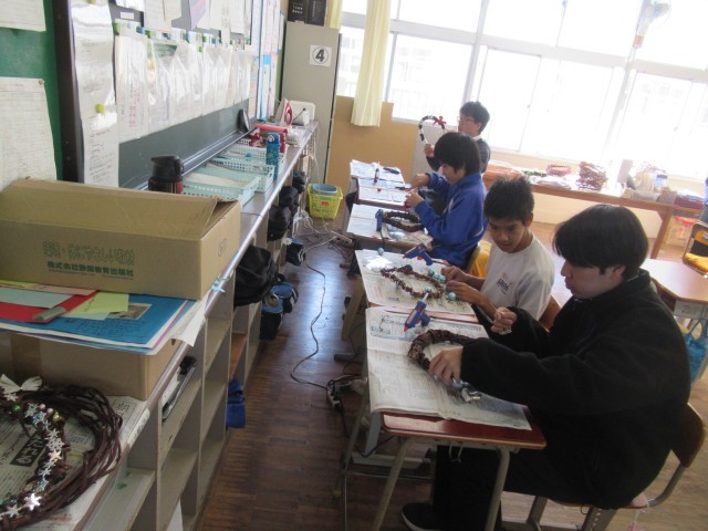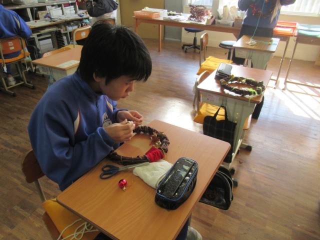 F組 クリスマスリース制作の様子です。