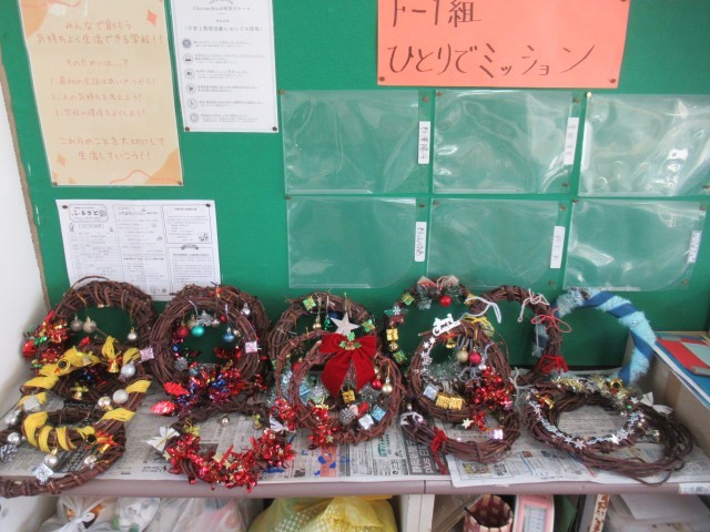 3枚目の写真は、これまでに仕上がっているリース作品です。各クラスに届くようですよ♪