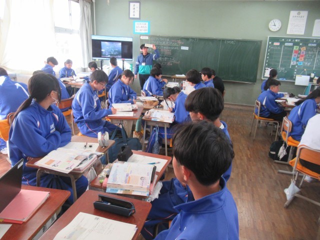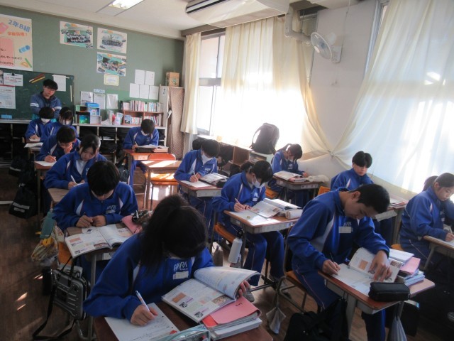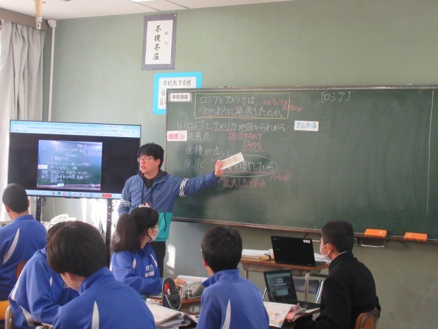 2B 社会 「ロシアとアメリカはどのように発展したのか。」を学習課題として調べたことや考えたことを書き出しているところでした。この後、日本の場合と比較しながら深めていきます。