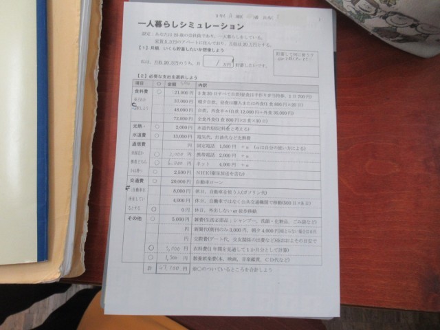 3A 社会 「私たちの消費生活」についての学習です。「一人暮らしのシミュレーション」に取り組んでしました。