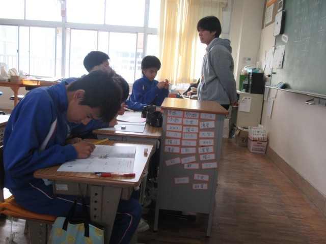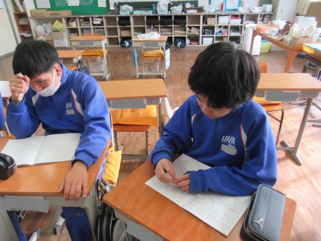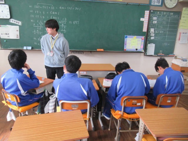 F組 数学 2グループに分かれて授業をしていました。それぞれの課題に取り組んでいました。