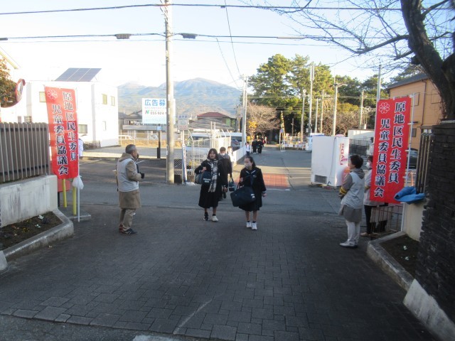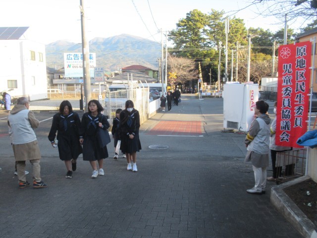 おはようございます。今朝は原地区民生児童員の皆様が校門に立ち、生徒たちを温かく迎えてくださいました。