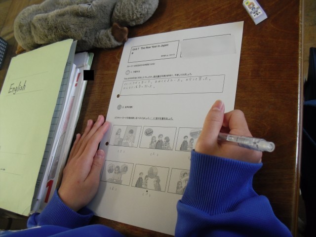1C 英語 Unit7全体の物語をリスニングで確認していました。