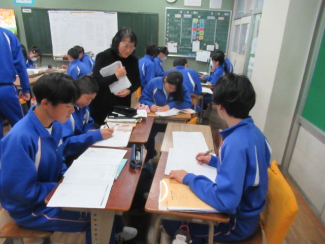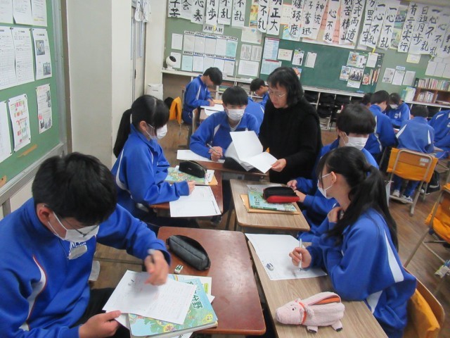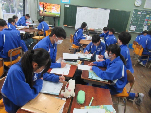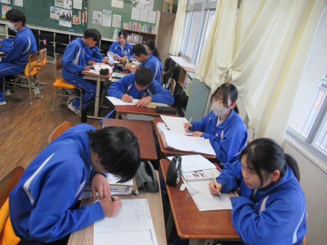 2B 家庭 2回目調理実習の計画を立てていました。1回目の実習はそろそろあるようで、計画書が班ごとに返されていました。ばっちりだったかな。