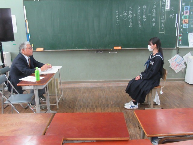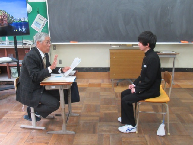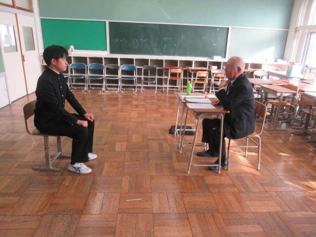 今日は半数の生徒が面接に臨みましたが、本番さながらの面接風景、緊張感が伝わってきました。