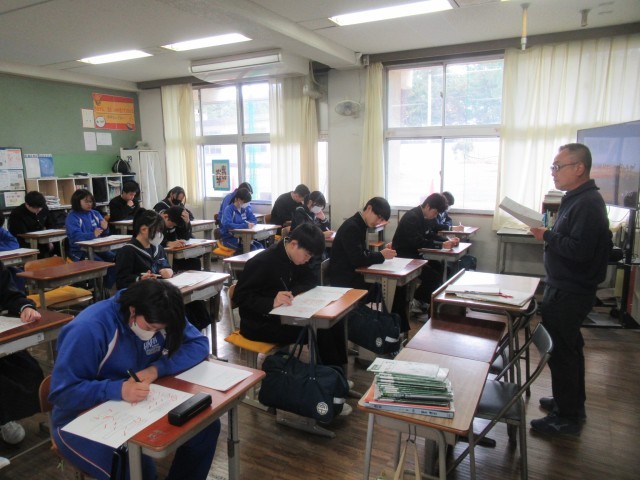 3年生は昨日1日でテストを終え、今日は学年授業です。