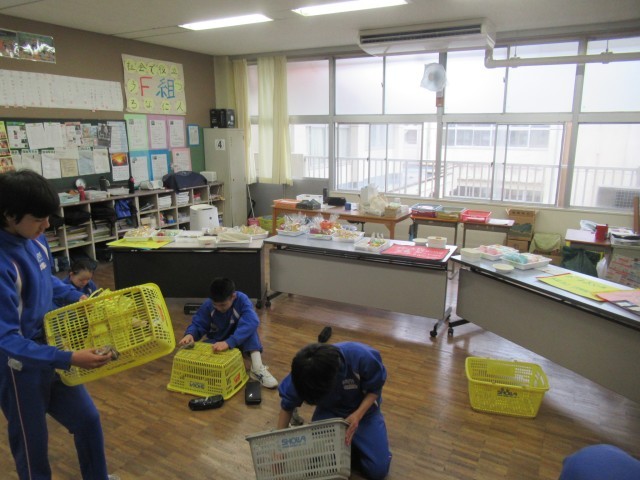 今日は待ちに待った製品販売会です。しかし、あいにくの雨のため、原小からの訪問が難しくなりました。そこで、本校の生徒が原小に出向いて販売会を行うことになりました。行ってらっしゃい!