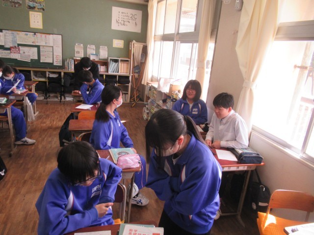 2C 数学 「確率」についての学習。ある問題について、ペアで自分の考えを交流しているところでした。